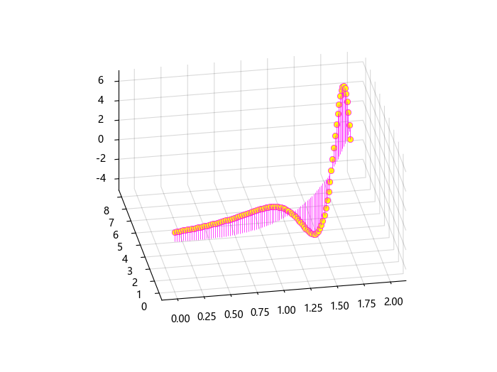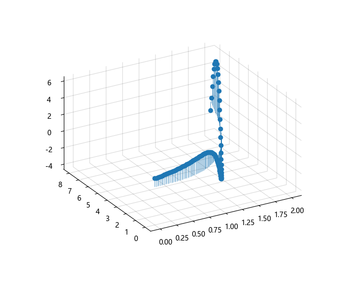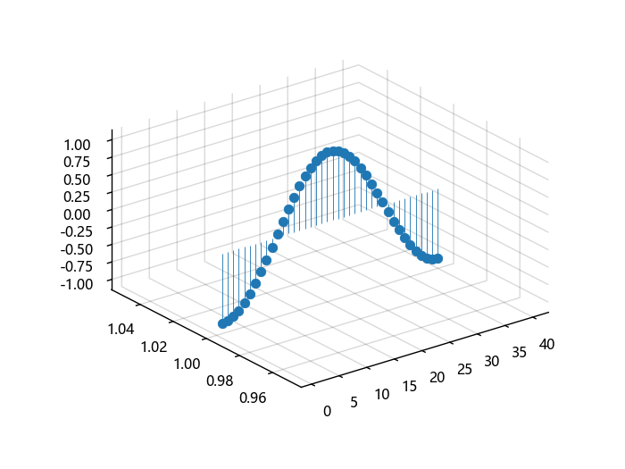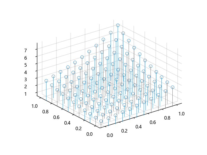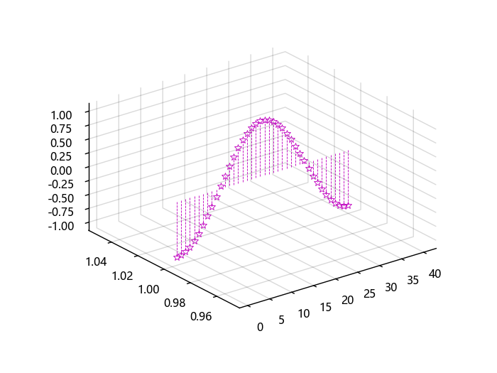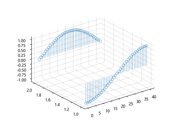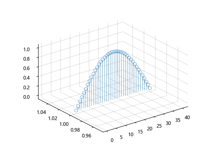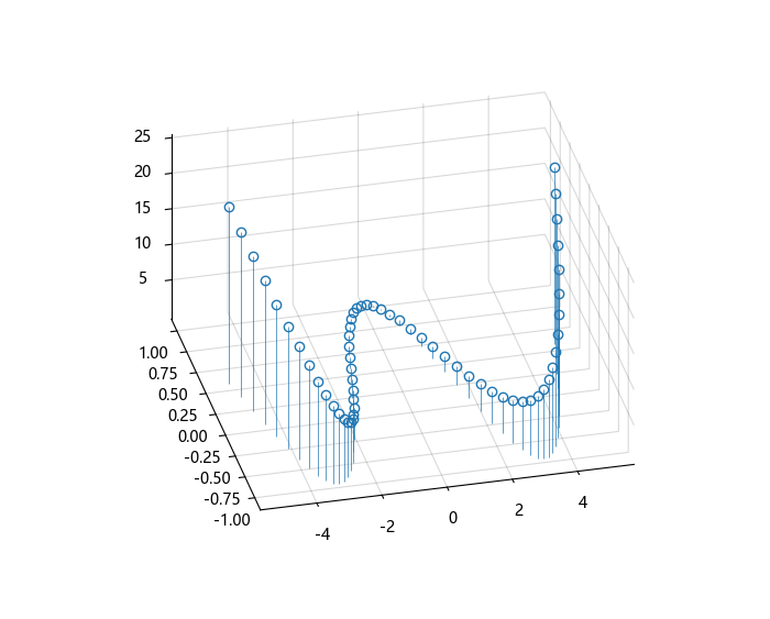 - 如果 Z 是向量,stem3 将在等间距的 x 值位置绘制所有元素对相同的 y 值的图;