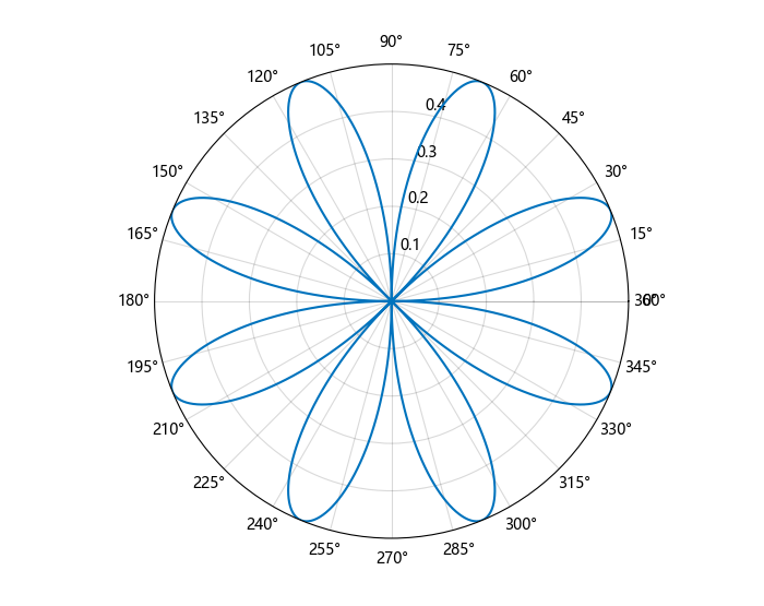 thetaticks(ticks)设置theta轴刻度值,这些值是沿theta轴出现刻度线和网格线的位置。指定ticks为递增值向量;例如[0 90 180 270]。此命令作用于当前坐标区。示例