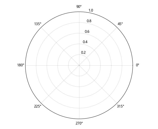 创建极坐标区,并返回极坐标区对象 pax。通过将 pax 作为 thetaticks 函数的第一个输入参数进行传递,确保该函数作用于您刚创建的极坐标区。