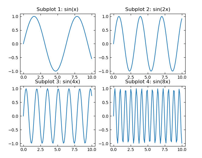 创建一个分为四个子图的图窗。在每个子图上绘制一条正弦波并为每个子图指定标题。