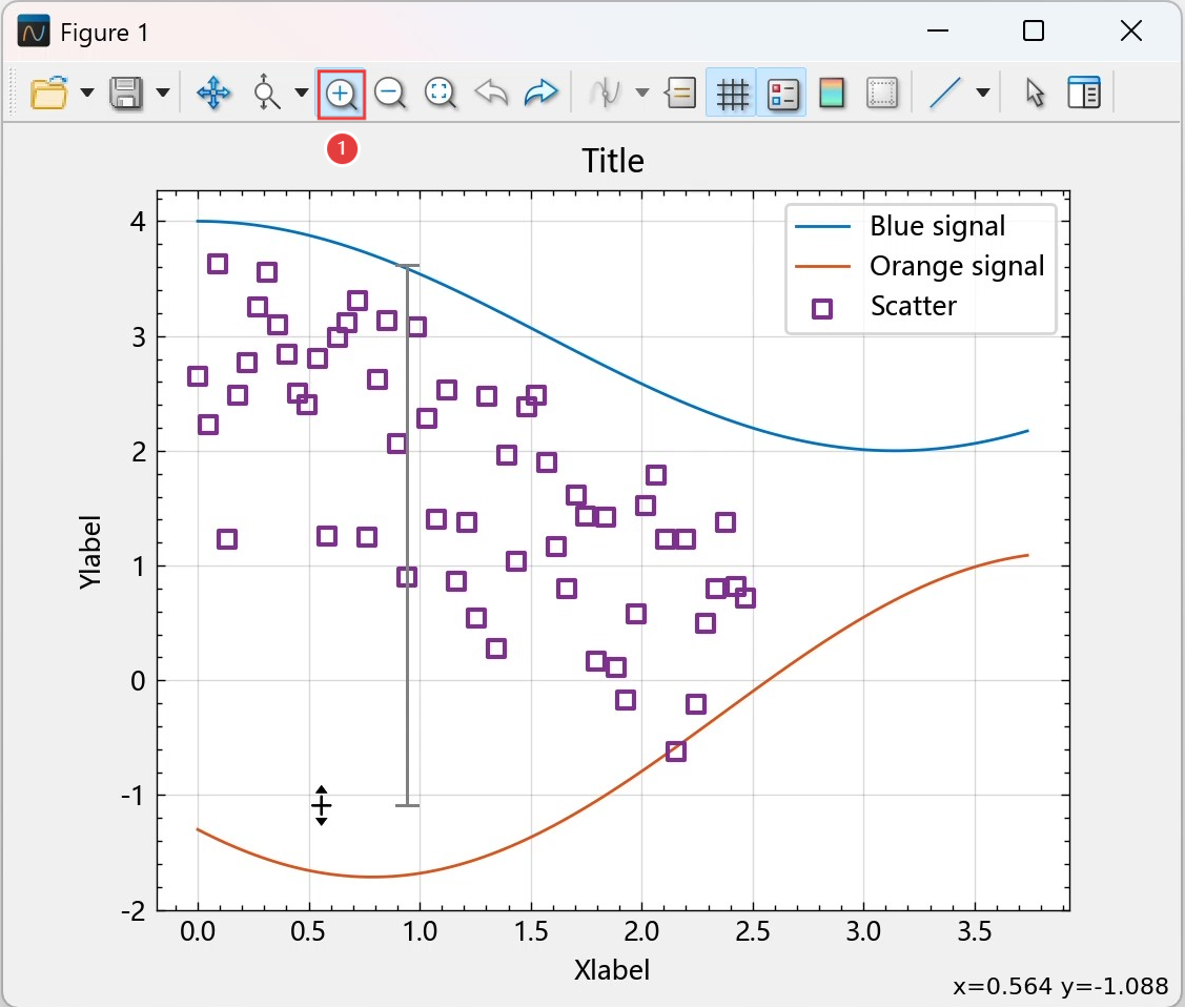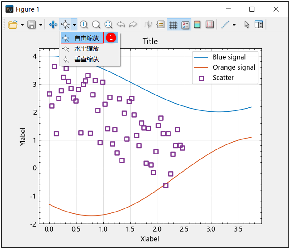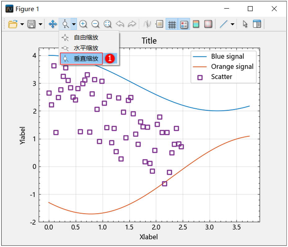 使用鼠标滚轮缩放:向上滚动放大,向下滚动缩小,仅在 y 轴方向上缩放。