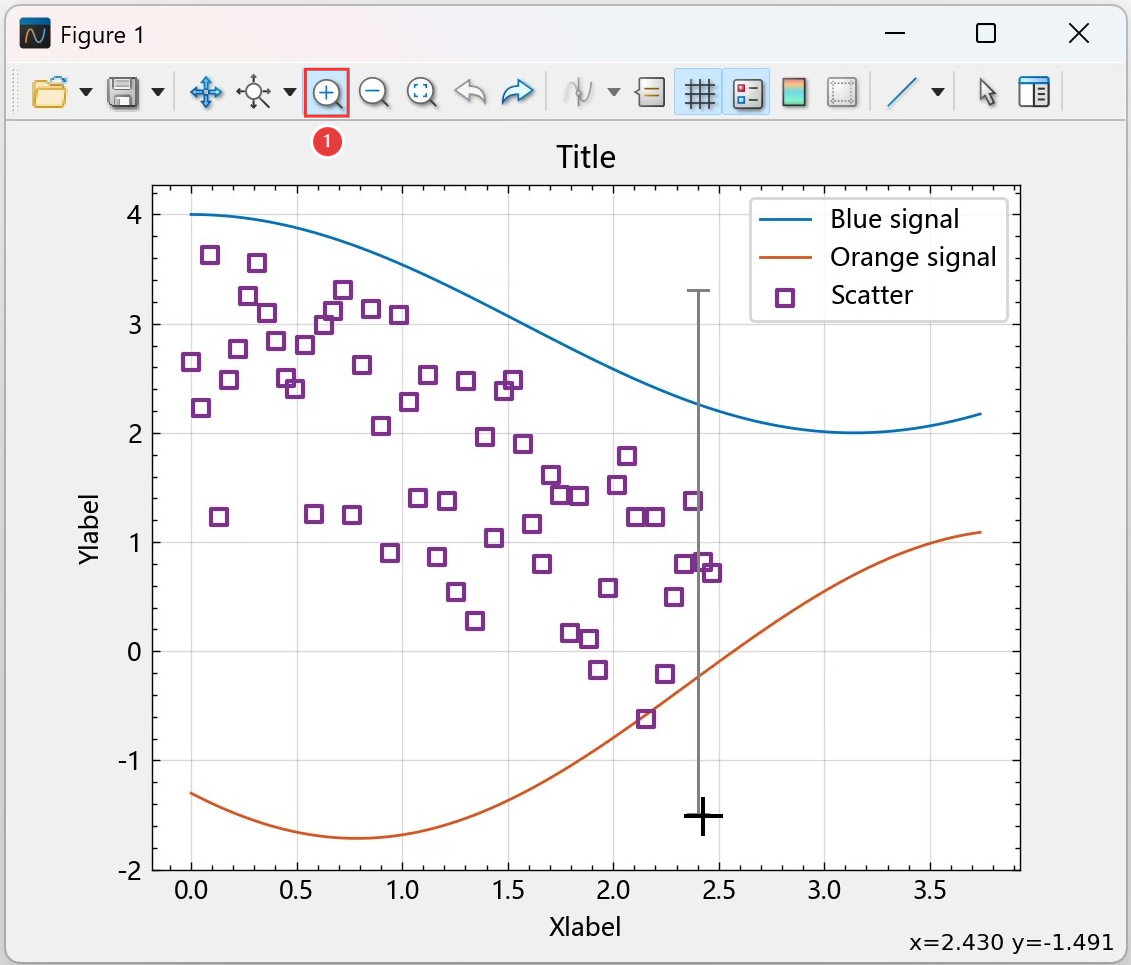 单击工具栏中 ① 的放大按钮,然后单击坐标轴区域在垂直方向上放大视图。双击可以恢复到其默认的视图。