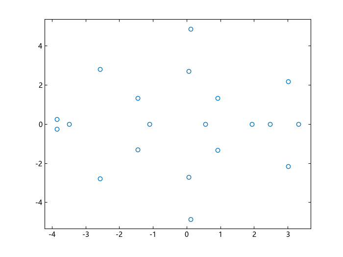 此示例演示如何绘制两个复数向量 z1 和 z2 的虚部与实部。如果将多个复数参数传递给 plot,例如 plot(z1,z2),则 Syslab 会忽略输入的虚部,仅绘制实部。要绘制多个复数输入的实部与虚部,必须将实部和虚部显式传递给 plot。