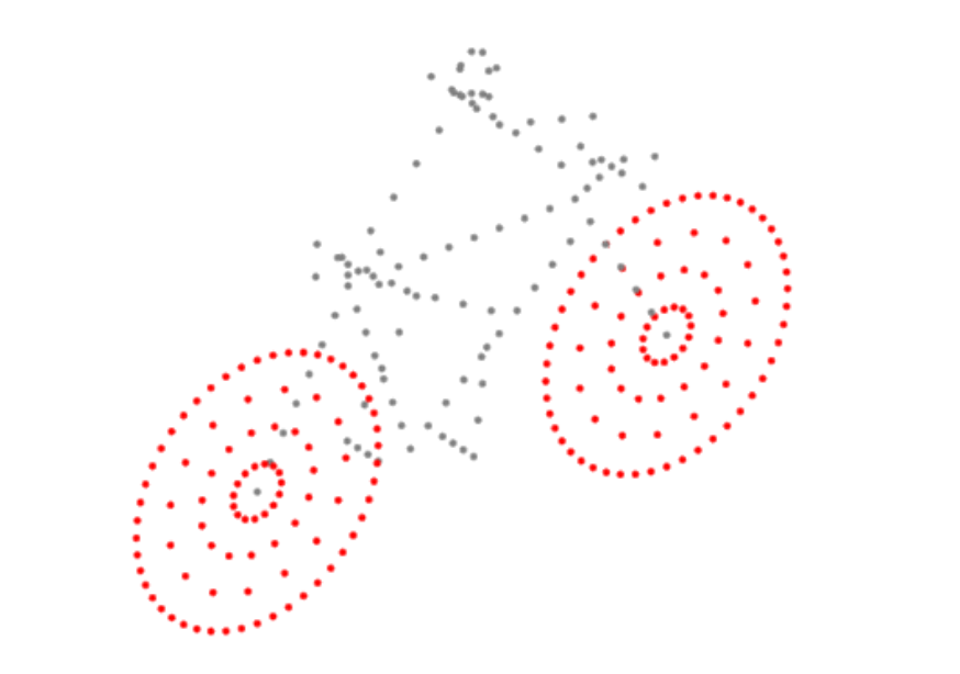 除车轮外,自行车上共有 114 个散射体。车轮的轮辋和辐条上有散射体。车轮上的散射体数量取决于每个车轮的辐条数量。辐条数量通过 NumWheelSpokes 属性指定。