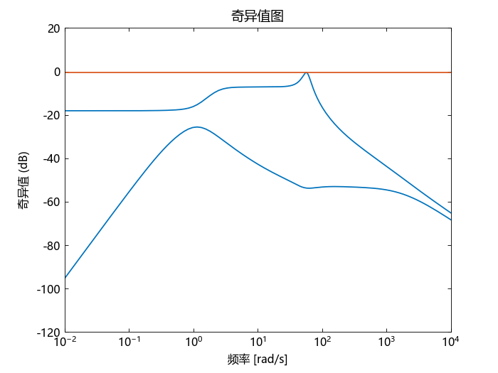 对于该系统,Gamma 约为 0.18,或约为 -15 dB。检查闭环结果的奇异值: