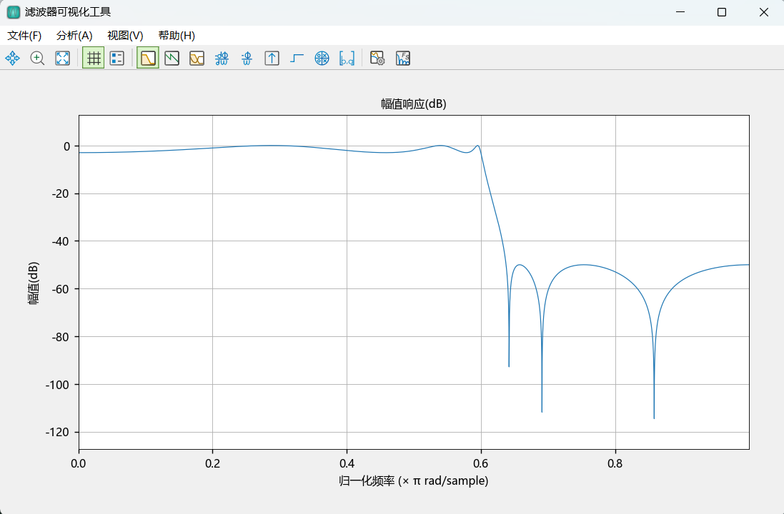 滤波器可视化工具应用程序使您能够显示和分析各类滤波器响应。