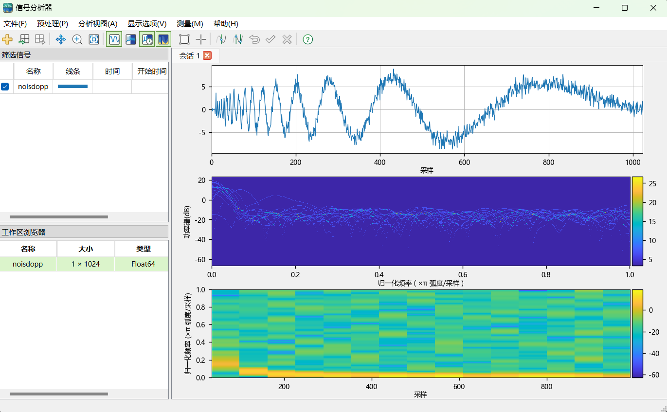 信号分析器应用程序使您能够在时域、频域和时频域中可视化、预处理、测量、分析和比较信号。