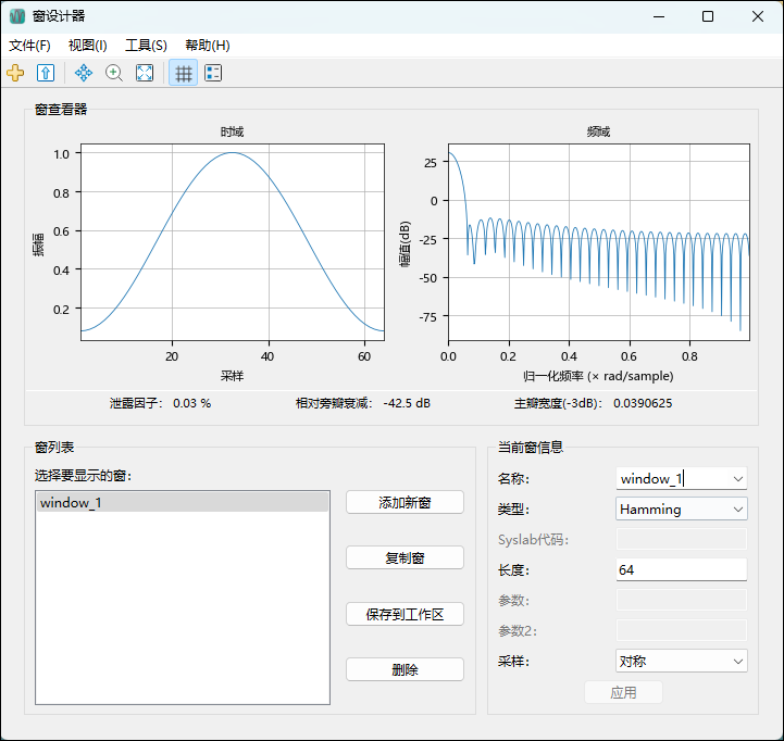 窗设计器应用程序使您能够设计和分析频谱窗。