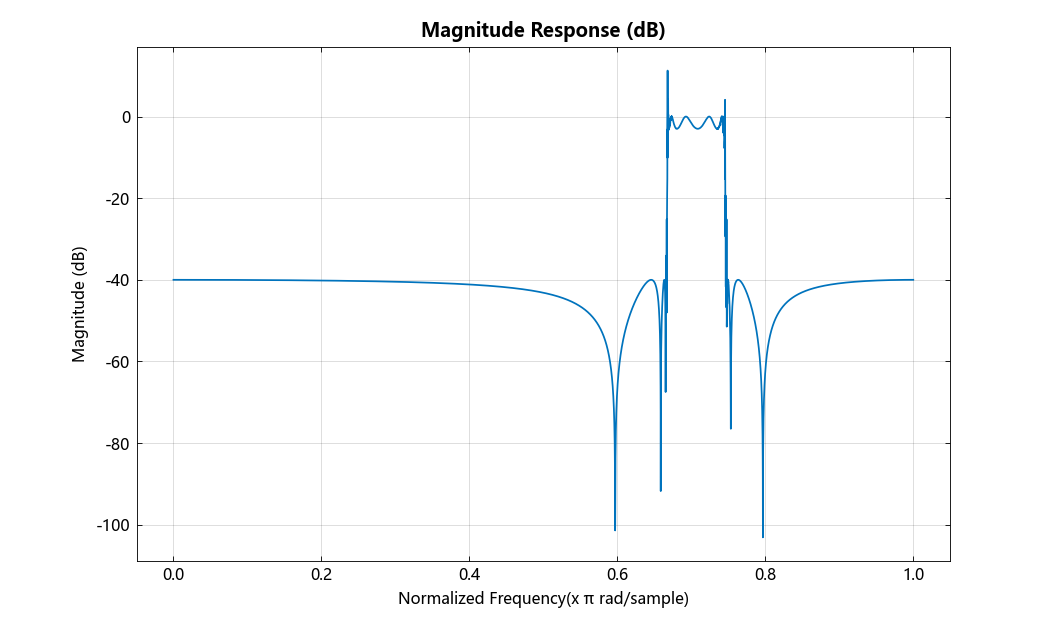 椭圆滤波器提供比巴特沃斯或切比雪夫滤波器更陡峭的滚降特性,但在通带和阻带中都是等波纹的。通常,椭圆滤波器满足给定的性能规格,并且是任何滤波器类型中最低阶的。