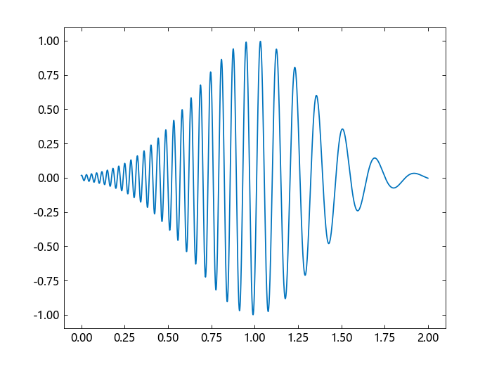 q = chirp(t .- 2, 4, 1 / 2, 6, "quadratic", 100) .* exp.(-4 * (t .- 1) .^ 2)
