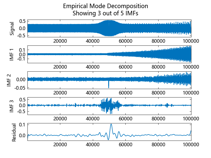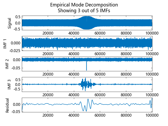 使用 emd 直观显示本征模式函数(IMF)和残差。