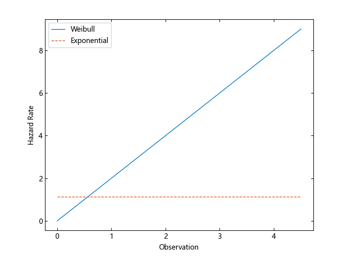 有关示例,请参阅比较指数和 Weibull 分布风险函数。