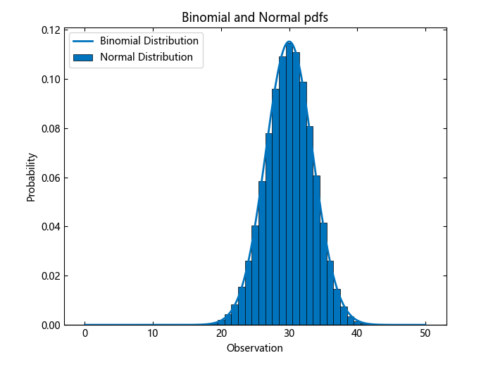 正态分布的 pdf 非常接近二项分布的 pdf。