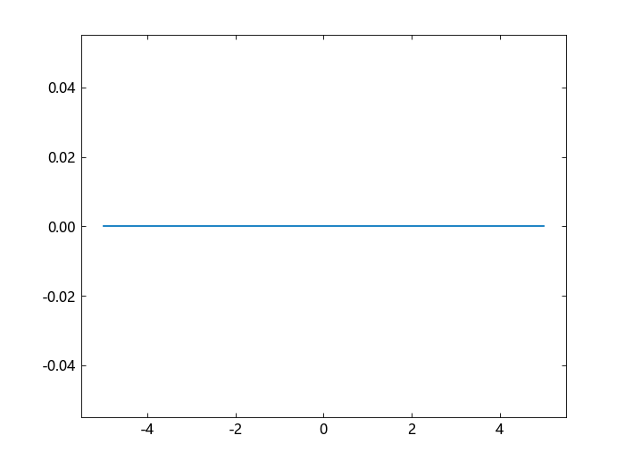 你可以使用 fplot 在默认区间 [-5,5] 上绘制狄拉克-德尔塔函数。但是 dirac(x) 在 x 等于 0 时返回 Inf,而 fplot 不会绘制无穷大。