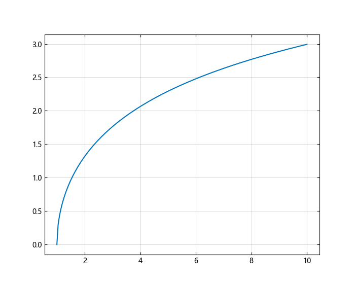 在从 1 到 10 的区间上绘制反双曲余弦函数。