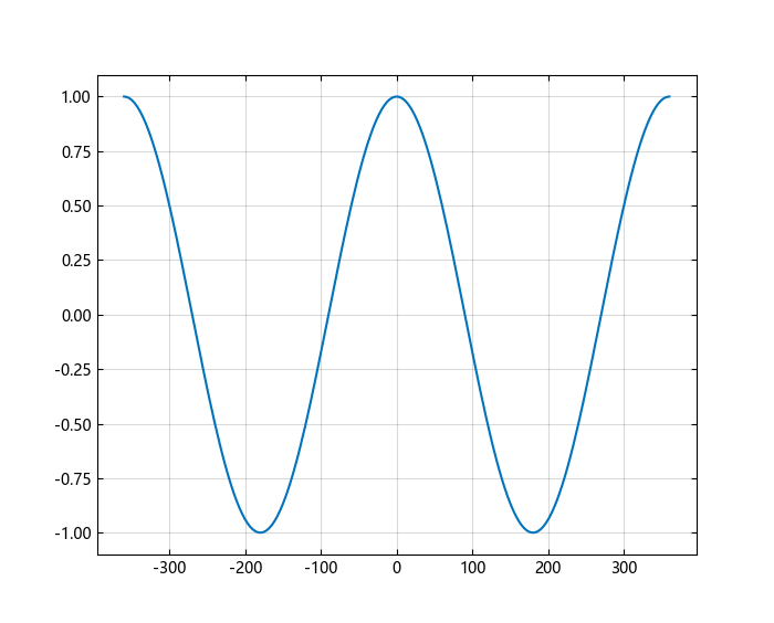 在从 -360° 到 360° 的区间上绘制余弦函数。
