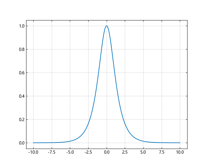 在从 -10 到 10 的区间上绘制双曲正割函数。