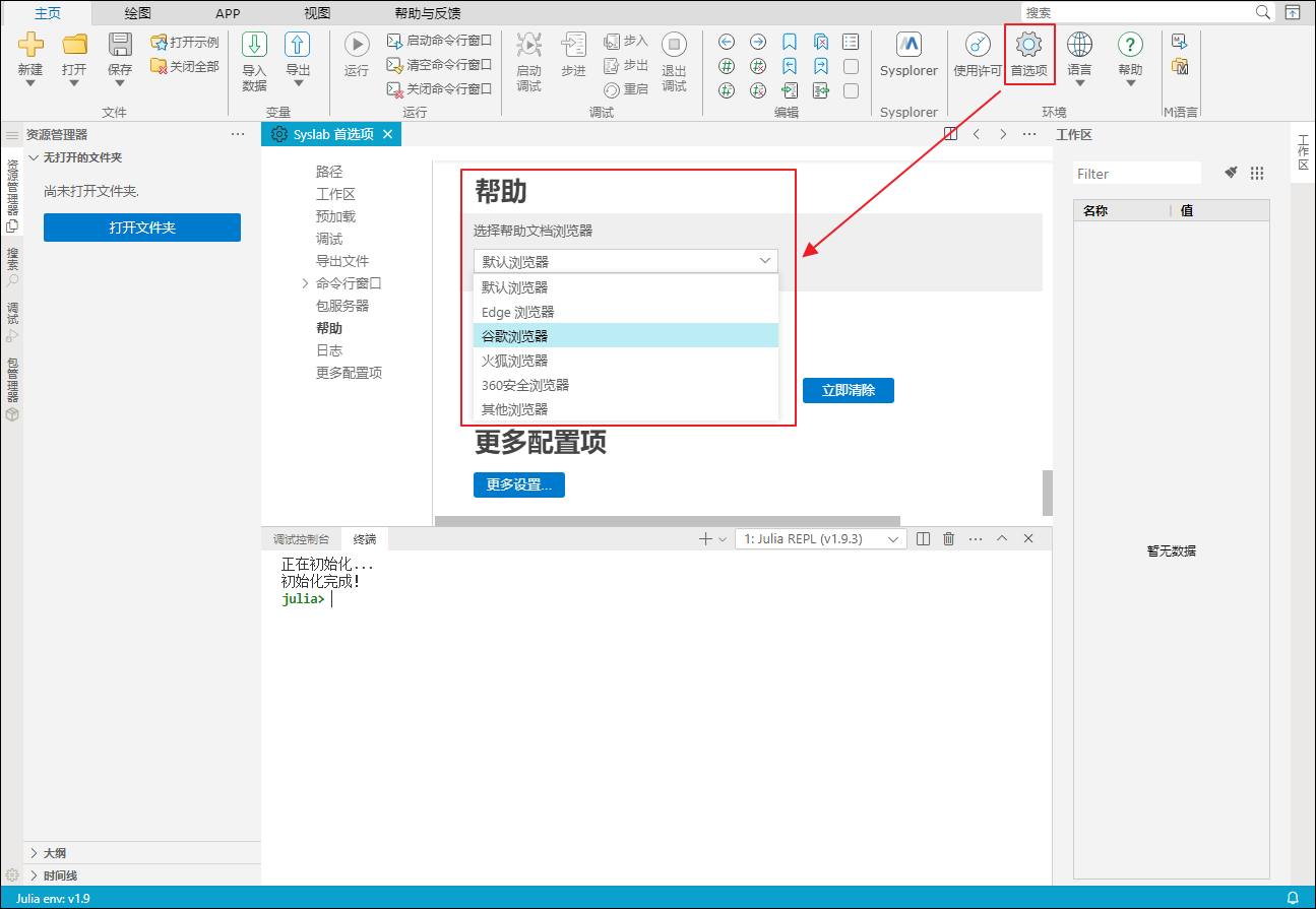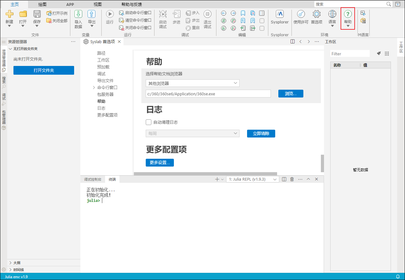 设置完成后重新打开帮助文档,点击 Syslab 主菜单中的