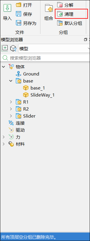 单击菜单栏中清理,清理所有顶层空分组,如下图所示: