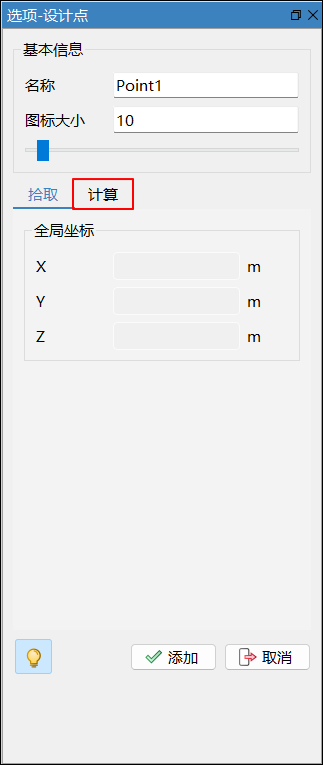 首次添加设计点时,默认为拾取模式,在选项-设计点侧边栏中,单击 tab 栏计算,切换至计算模式。