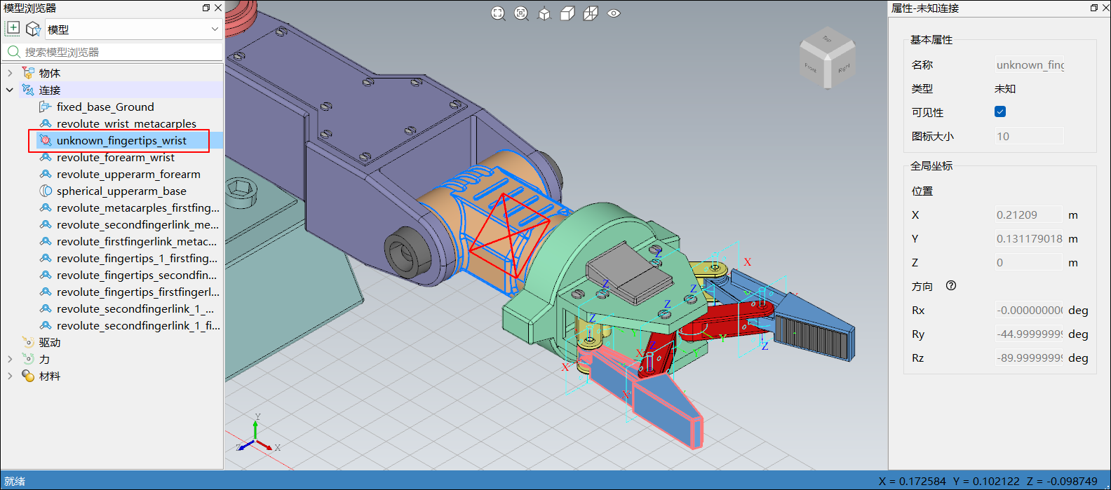 包含几何约束信息的模型导入后,会自动生成运动副,其中可能包含未知类型的运动副。