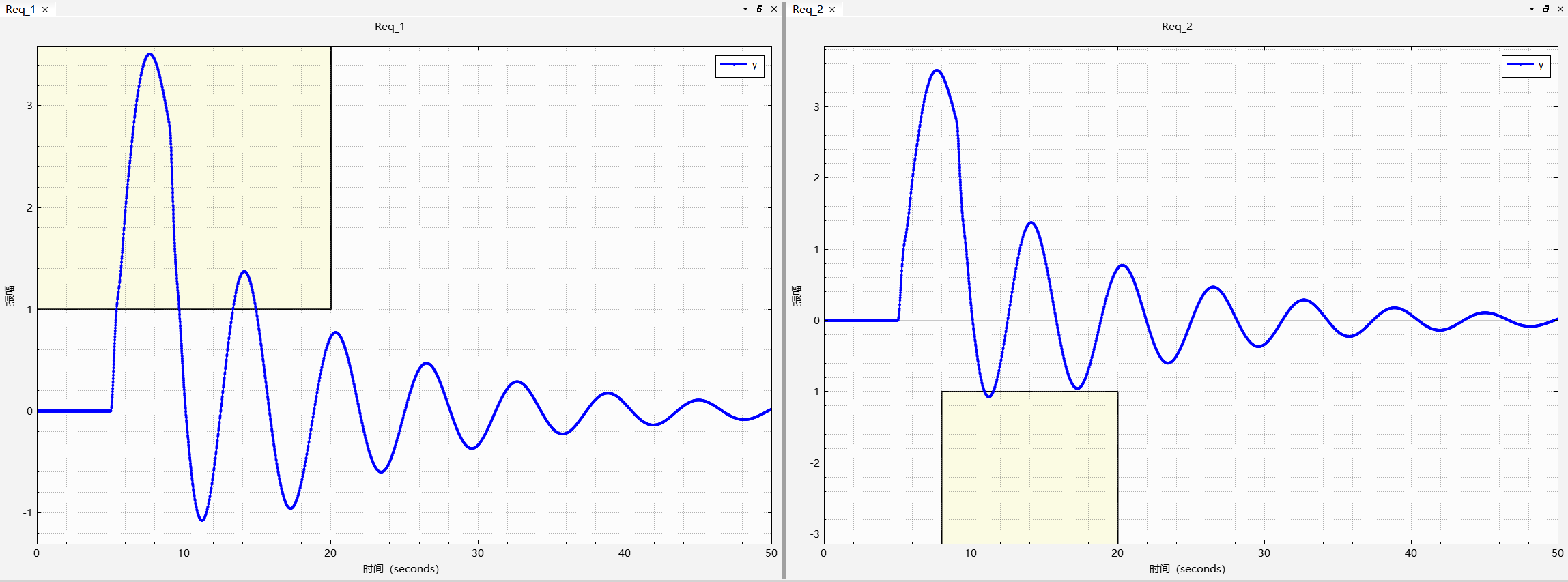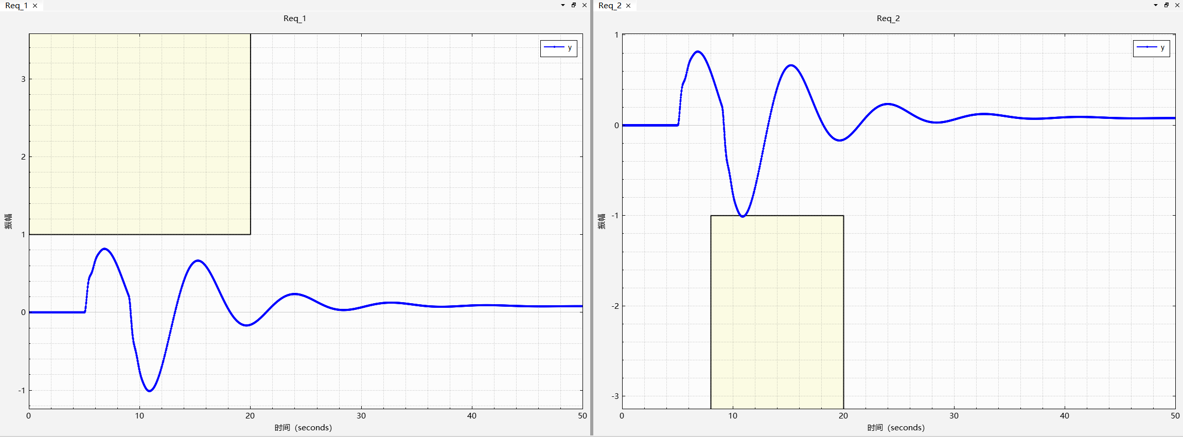 为使乘车人员在乘车时的舒适度更高,现在要求通过调整控制参数,使得车体的震动幅度不能超过 1,具体的幅度边界要求如下图所示: