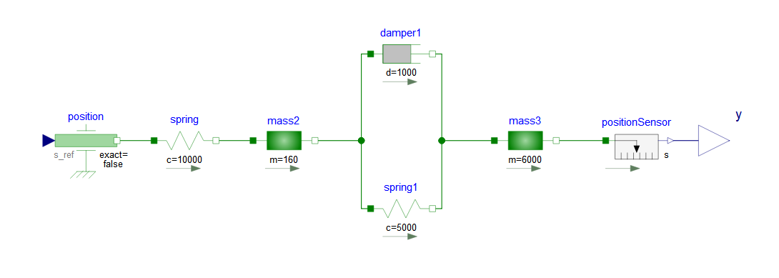 在 Sysplorer 工作区搭建如下图示意的减震系统物理模型及控制系统模型。