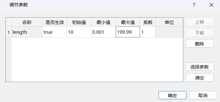(3) 在选择参数面板中勾选作为调节参数,单击确定按钮;