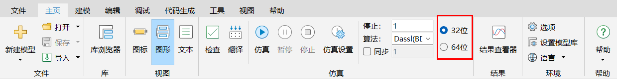 FMU 求解失败先检查 FMU 的位数与 MWORKS 中设置的位数是否相同,如果 FMU 是 32 位,则在 MWORKS 中求解时需要选择 32 位,如果 FMU 是 64 位,在 MWORKS 中求解时需要选择 64 位。如果位数选择没有问题,FMU 求解失败,需要将问题反馈到内核。MWORKS 中位数设置页面如下图: