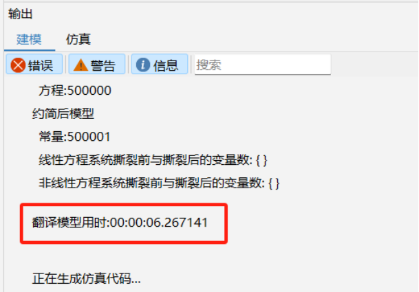 FMU 导出过程也会对模型进行检查翻译,如果 FMU 导出失败并且有报错信息,先查看直接检查/翻译模型是否会报错,如果检查/翻译模型报错信息与导出 FMU 失败报错相同那么需要先检查是否是模型本身有问题导致检查/翻译失败。如果直接对模型进行翻译不报错,导出 FMU 报错,则需要将问题反馈到内核。