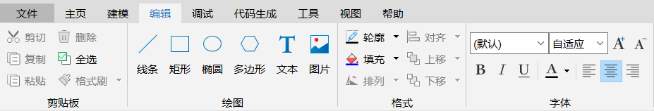 本文介绍编辑功能区的所有功能。切换图形(图标)视图和文本视图,功能区的功能动态变化。