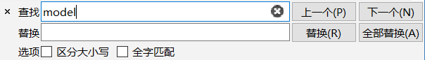 下一个:从光标位置开始向后查找,高亮选中找到的第一个文字;如果未找到,则尝试从头开始查找;
