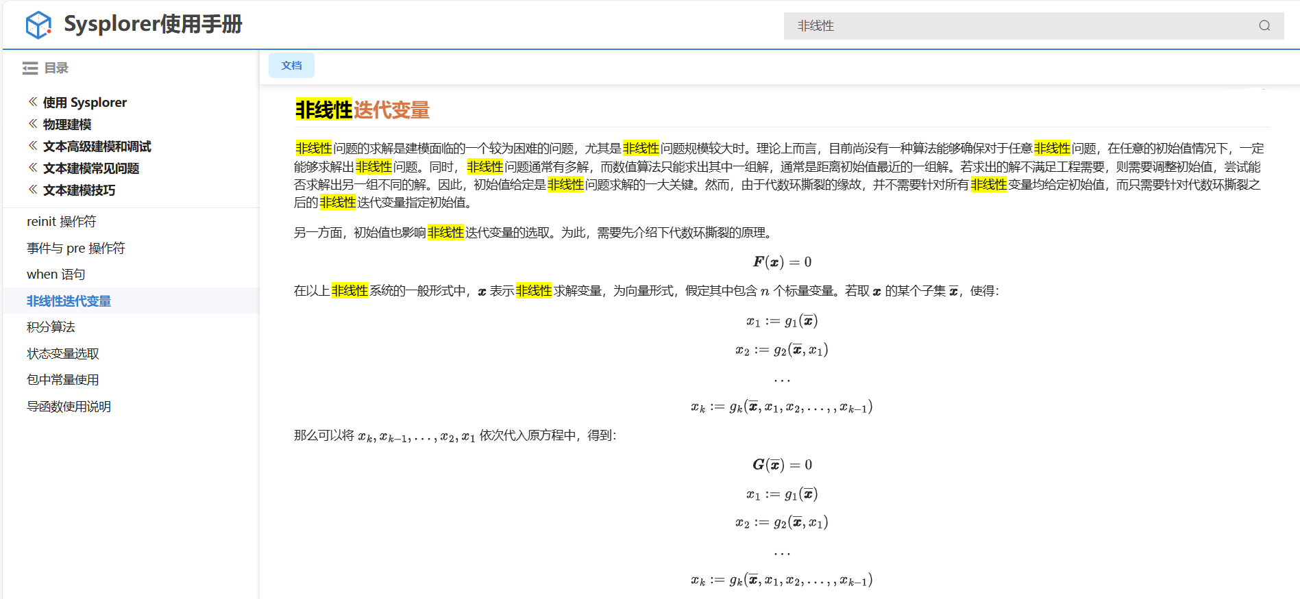 - 非线性迭代变量的选择也会影响模型求解,内核会优先将在模型顶层给定了 start 值的变量选为非线性迭代变量,但不一定就会选为非线性迭代变量。若用户希望将某个变量作为求解变量,可以尝试在模型顶层为其给定 start 值。