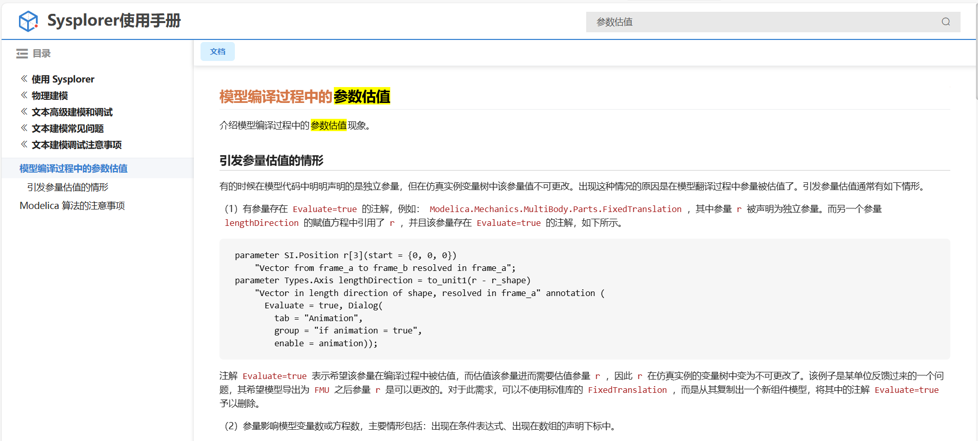 当参数估值勾选后,会将模型中所有自由参量替换为数值常数,降低模型中的复杂度。对方程进行了处理,可能过程中改变了方程求解,导致模型求解性与未勾选有区别。具体关于该选项的设置详情可在 Sysplorer 使用手册中搜索 “参数估值”进行了解。