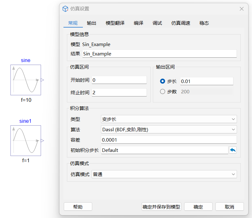 根据自己所用模块,判断所需的采样时间,在仿真设置中给定相应的步长即可,即仿真步长要尽量远小于频率设置的步长。例如仿真设置步长为 0.01 s,sin 模块设置的频率为 0.1 HZ 时(每次周期现象发生所需时间为 10 s)满足仿真步长远小于频率设置的步长的要求,故能获得正确的波形,且采样数越多,结果越精细。