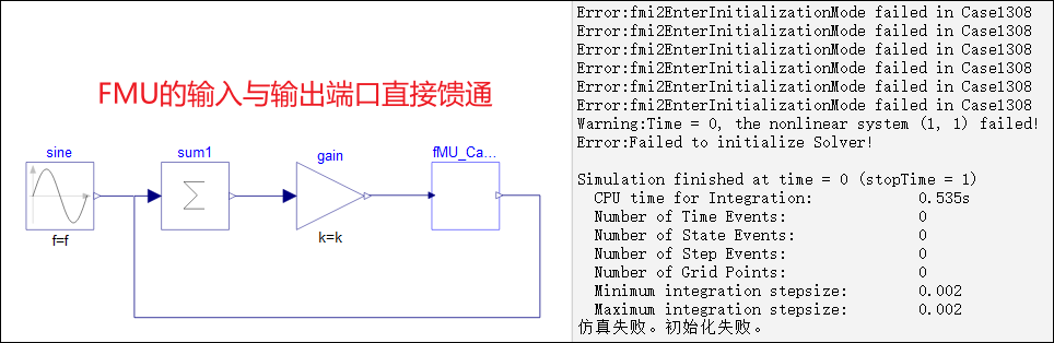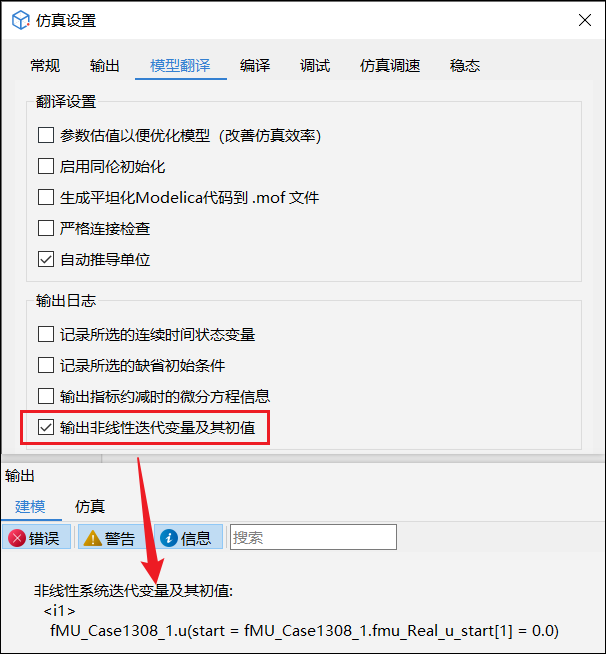 解决方案:导出 FMU 时,应选择与原模型求解算法、步长和精度相匹配的配置,以确保原模型能得到收敛解。