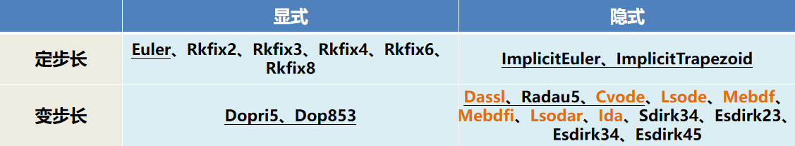 Sysplorer 支持的定步长和变步长积分算法列表如下: