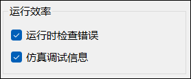 勾选【运行时检查错误】会一定程度降低仿真效率。