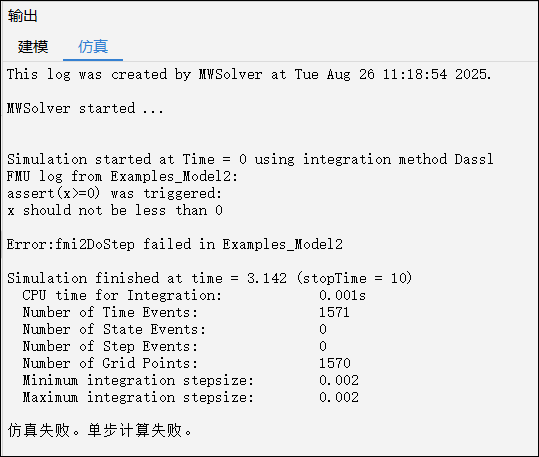 且该 FMU 仿真时会报错: