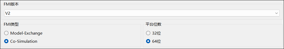 用户需确认所选的 FMU 版本、FMU 类型(Co-simulation 或 Model Exchange)以及平台位数(32 位 / 64 位)是否满足使用需求;