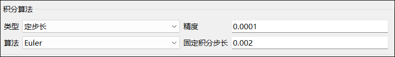 - 若算法类型为定步长,则该项为固定积分步长,默认继承仿真设置中的固定积分步长/积分步数。