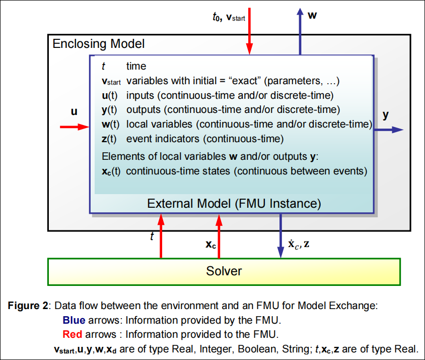 Model Exchange 类型的 FMU 求解示意图如下所示(图片来源:Functional Mock-up Interface Specification 2.0.4, Page 73 of 132):
