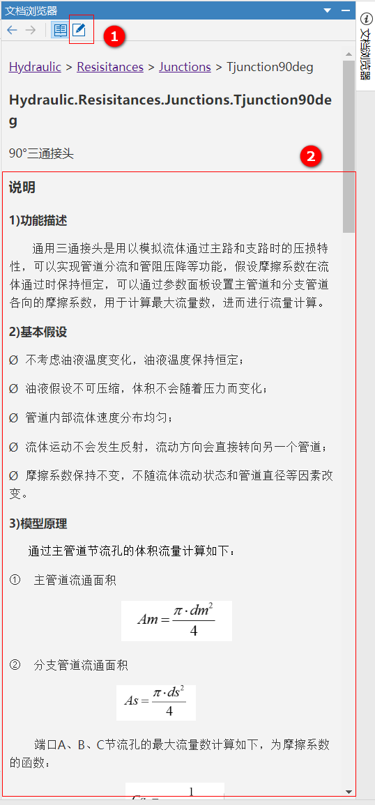 //实例化 Interfaces.FluidPort_a port_B "流入组件端口" annotation (Placement(transformation(origin = {100.0, 0.0}, extent = {{-10.0, -10.0}, {10.0, 10.0}}))); Interfaces.FluidPort_b port_C "流入组件端口" annotation (Placement(transformation(origin = {0.0, -100.0}, extent = {{-10.0, -10.0}, {10.0, 10.0}}))); Interfaces.FluidPort_a port_A "流入组件端口" annotation (Placement(transformation(origin = {-100.0, 0.0}, extent = {{-10.0, -10.0}, {10.0, 10.0}})));在编写完成模型代码后,需要为模型绘制图标和编写文档浏览器。