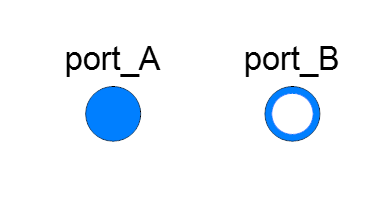 接口 变量 范围/单位 数据维度 数据类型 描述 Port p bar [1] Real 接口压力 q L/min [1] Real 接口体积流量 液压接口图标使用蓝色圆圈(通常位于模型左侧)和蓝色圆环(通常位于模型右侧)表示,如下图所示: