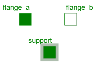 接口名称 变量名称 单位 数据类型 描述 flange s m Real 位移 f N Real 力 一维平动机械接口图标使用绿色的方块(通常位于模型左侧)、白色的方块(通常位于模型右侧)和绿色方块带灰边(通常为外壳用)表示,如下图所示: