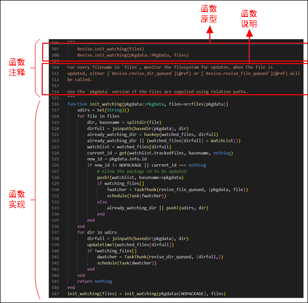 Julia 包中最常用的就是函数,函数定义由两部分组成:一是函数注释,包括函数原型和函数功能说明;二是函数的算法实现。
