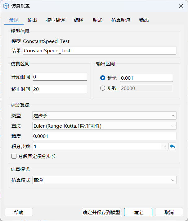 | 求解步长 | 0.001 | 仿真输出点之间的间隔长度 |