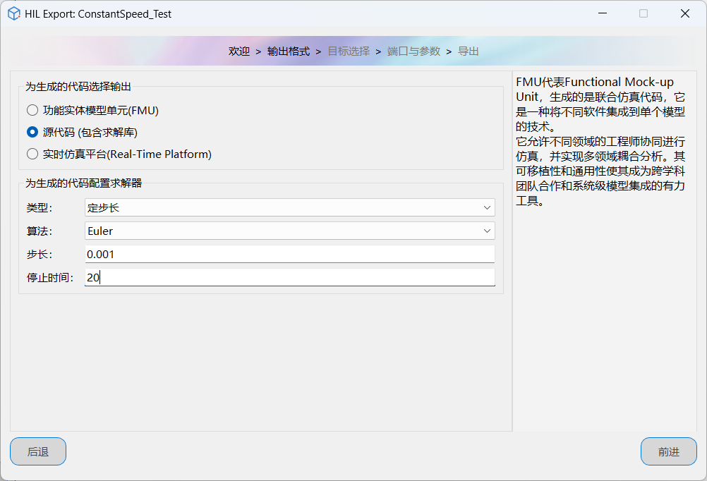 半物理仿真接口工具(Hardware-in-the-Loop Export,简称 HIL Export),可以快速、高效地将 Modelica 物理模型转换为适用于实时环境的可执行代码(高效 C 代码或联合仿真代码)。本文介绍了使用 HIL Export 工具箱,将速度跟随物理模型转换为 C 代码并编译运行的方法。