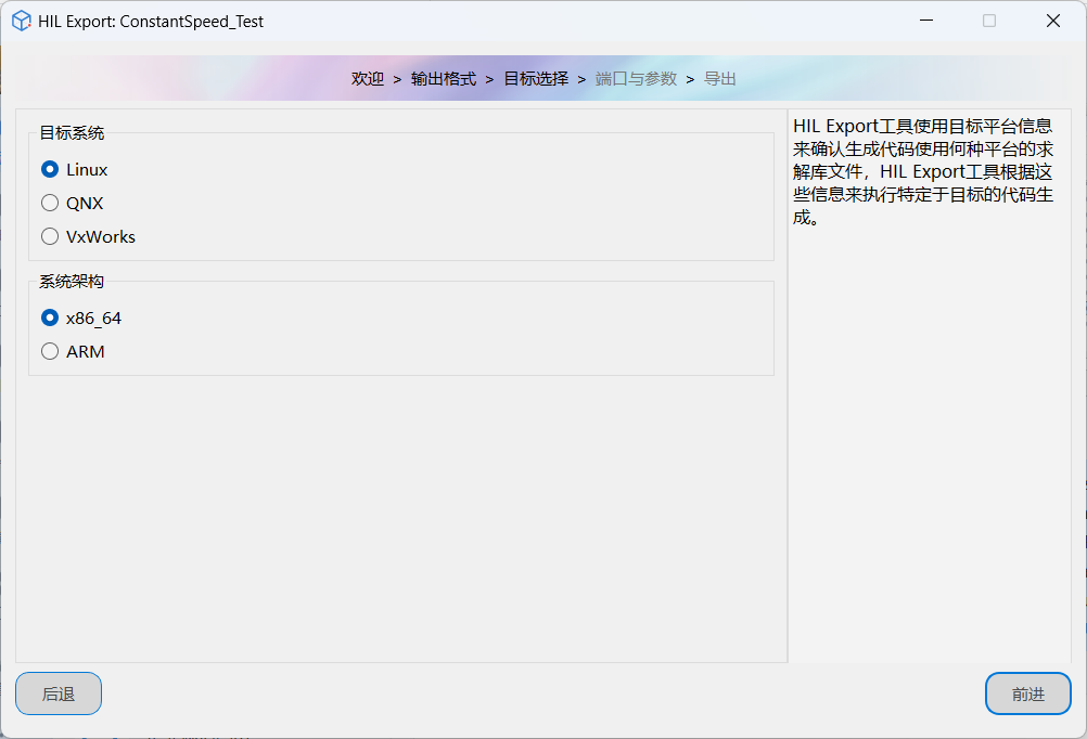 | 目标系统 | Linux(64) | 选择生成代码的目标部署系统 |