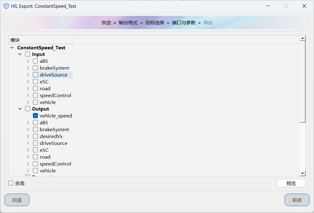 | Output | 勾选 vehicle_speed | 输出车辆的行驶速度 |